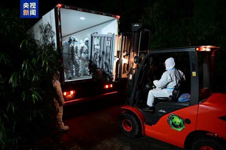 旅日大熊猫“晓晓”“蕾蕾”抵达熊猫中心雅安基地