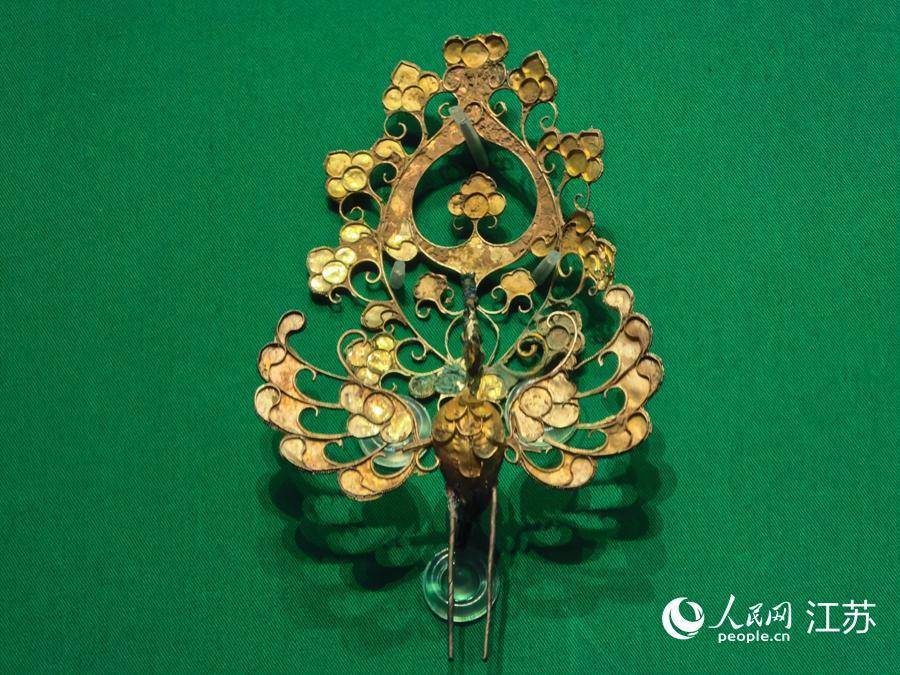 唐代凤形包金银步摇。人民网记者 王继亮摄